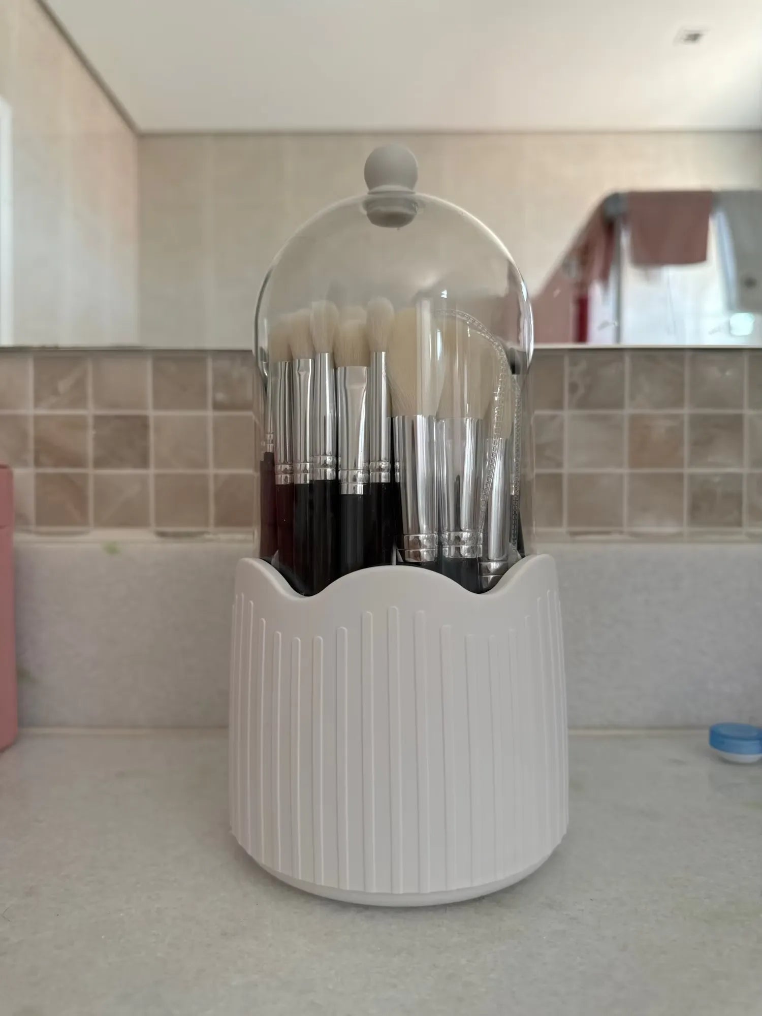 Such a game changer! My vanity looked so cluttered before, but this holder really helps everything look organized and pretty.